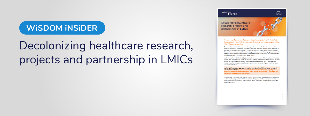 There is general consensus that we must decolonize global health – but what does this really mean for Pharma’s research, projects and partnerships in LMICs? Policy Wisdom is here to help!