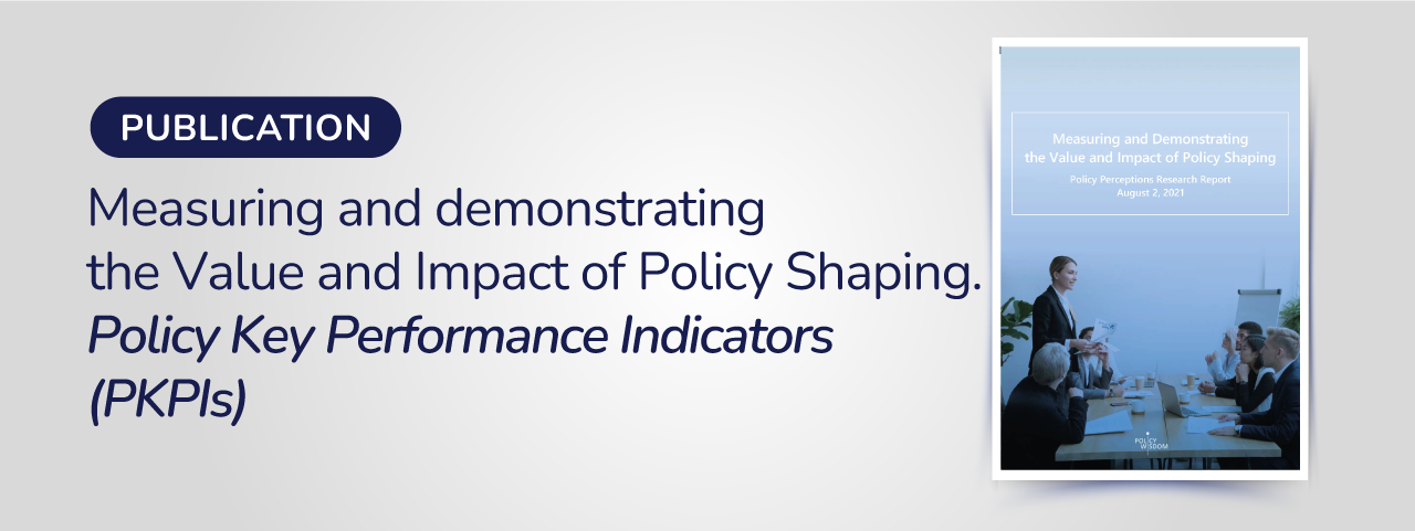 Utilizing the insights gathered, Policy Wisdom developed a Policy Value Framework and accompanying set of Policy Key Performance Indicators (PKPIs) designed to measure and demonstrate the impact of policy efforts pursued by staff and teams in policy, government affairs, public affairs, or access departments.