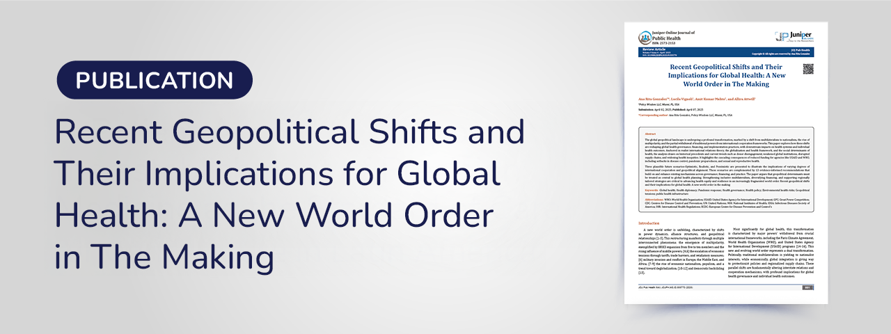 Three plausible future scenarios—optimistic, realistic, and pessimistic—are presented to illustrate the implications of varying degrees of international cooperation and geopolitical alignment. These scenarios are complemented by 13 evidence-informed recommendations that build on and enhance existing mechanisms across governance, financing, and practice. The paper argues that geopolitical determinants must be treated as central to global health planning. Strengthening inclusive multilateralism, diversifying financing, and supporting regionally tailored strategies are critical to advancing health equity and resilience in an increasingly fragmented world order.