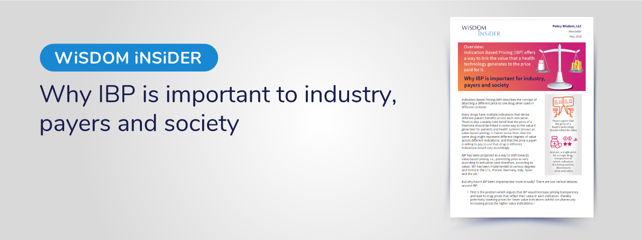 IBP has been proposed as a way to shift towards value-based pricing, i.e., permitting price to vary according to indication (and therefore, according to value). IBP has been implemented to various degrees and forms in the U.S., France, Germany, Italy, Spain and the UK.1
